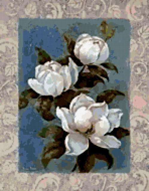 Ориентировочно так, схема вышивки «Variant 1a», созданная автором Lamisa, будет выглядеть при отшиве на канве. Размер данной вышивки равен 148x190 крестов, при этом используется 39 цветов. Ключевые слова, по которым можно найти эту схему: цветы, cvety. Также, вы можете взглянуть на оригинальную картинку, соответствующую данной схеме вышивки.