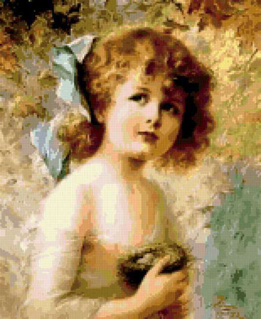 Ориентировочно так, схема вышивки «Variant 1b», созданная автором Lamisa, будет выглядеть при отшиве на канве. Размер данной вышивки равен 155x189 крестов, при этом используется 50 цветов. Ключевые слова, по которым можно найти эту схему: дети, девочка, портрет. Также, вы можете взглянуть на оригинальную картинку, соответствующую данной схеме вышивки.