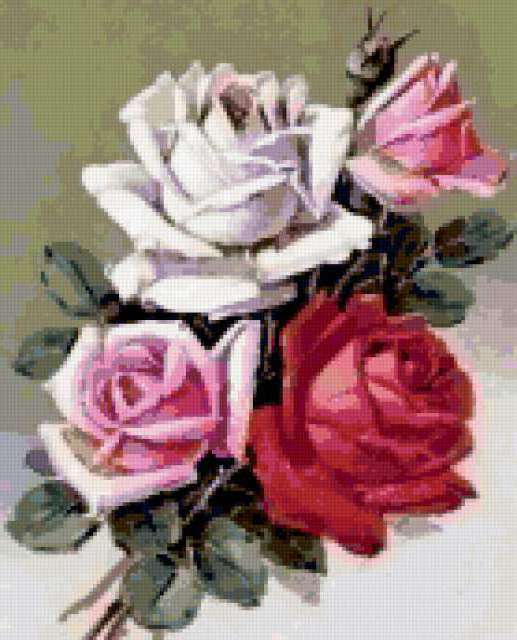 Ориентировочно так, схема вышивки «Variant 1b», созданная автором Lamisa, будет выглядеть при отшиве на канве. Размер данной вышивки равен 139x172 крестов, при этом используется 72 цветов. Ключевые слова, по которым можно найти эту схему: цветы, cvety, розы. Также, вы можете взглянуть на оригинальную картинку, соответствующую данной схеме вышивки.