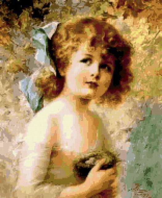Ориентировочно так, схема вышивки «Variant 1c», созданная автором Lamisa, будет выглядеть при отшиве на канве. Размер данной вышивки равен 156x190 крестов, при этом используется 47 цветов. Ключевые слова, по которым можно найти эту схему: дети, девочка, портрет. Также, вы можете взглянуть на оригинальную картинку, соответствующую данной схеме вышивки.