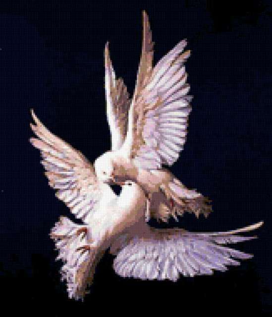 Ориентировочно так, схема вышивки «Variant 2», созданная автором Lamisa, будет выглядеть при отшиве на канве. Размер данной вышивки равен 163x190 крестов, при этом используется 53 цветов. Ключевые слова, по которым можно найти эту схему: картины, птицы, пара. Также, вы можете взглянуть на оригинальную картинку, соответствующую данной схеме вышивки.