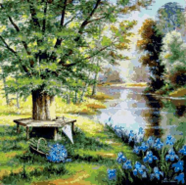 Ориентировочно так, схема вышивки «Variant 2», созданная автором Lamisa, будет выглядеть при отшиве на канве. Размер данной вышивки равен 190x189 крестов, при этом используется 43 цветов. Ключевые слова, по которым можно найти эту схему: природа. Также, вы можете взглянуть на оригинальную картинку, соответствующую данной схеме вышивки.