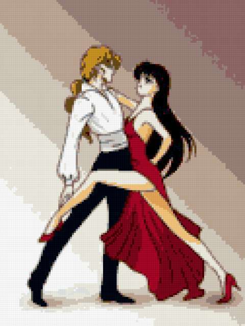 Ориентировочно так, схема вышивки «Variant 2», созданная автором Lamisa, будет выглядеть при отшиве на канве. Размер данной вышивки равен 126x168 крестов, при этом используется 20 цветов. Ключевые слова, по которым можно найти эту схему: люди, пара, танец. Также, вы можете взглянуть на оригинальную картинку, соответствующую данной схеме вышивки.