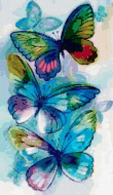 Ориентировочно так, схема вышивки «Variant 2», созданная автором Lamisa, будет выглядеть при отшиве на канве. Размер данной вышивки равен 110x190 крестов, при этом используется 61 цветов. Ключевые слова, по которым можно найти эту схему: насекомые, бабочки, babochki. Также, вы можете взглянуть на оригинальную картинку, соответствующую данной схеме вышивки.