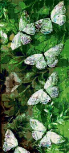 Ориентировочно так, схема вышивки «Variant 2», созданная автором Lamisa, будет выглядеть при отшиве на канве. Размер данной вышивки равен 86x190 крестов, при этом используется 51 цветов. Ключевые слова, по которым можно найти эту схему: насекомые, бабочки, babochki. Также, вы можете взглянуть на оригинальную картинку, соответствующую данной схеме вышивки.