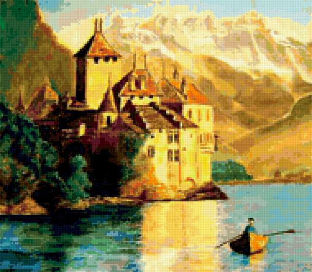 Ориентировочно так, схема вышивки «Variant 2», созданная автором Lamisa, будет выглядеть при отшиве на канве. Размер данной вышивки равен 190x166 крестов, при этом используется 75 цветов. Ключевые слова, по которым можно найти эту схему: пейзаж, море, замки, горы. Также, вы можете взглянуть на оригинальную картинку, соответствующую данной схеме вышивки.