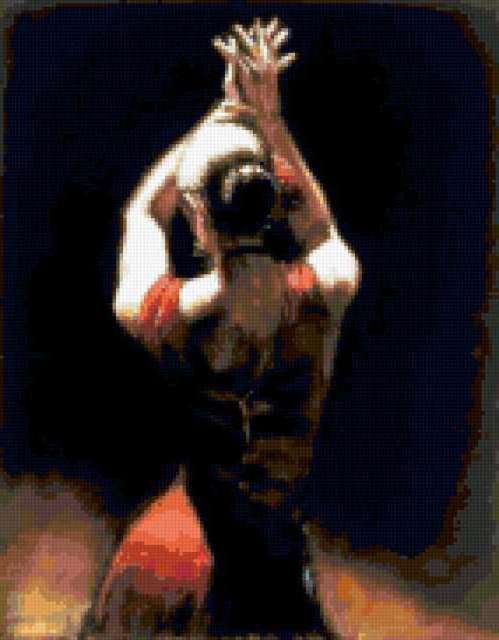 Ориентировочно так, схема вышивки «Variant 2», созданная автором Lamisa, будет выглядеть при отшиве на канве. Размер данной вышивки равен 142x182 крестов, при этом используется 50 цветов. Ключевые слова, по которым можно найти эту схему: девушка, танцовщица. Также, вы можете взглянуть на оригинальную картинку, соответствующую данной схеме вышивки.
