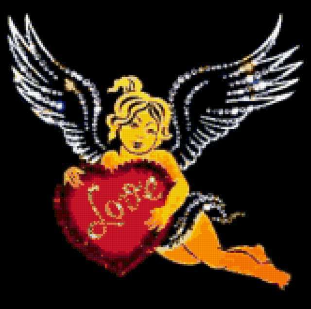 Ориентировочно так, схема вышивки «Variant 2», созданная автором Lamisa, будет выглядеть при отшиве на канве. Размер данной вышивки равен 166x165 крестов, при этом используется 40 цветов. Ключевые слова, по которым можно найти эту схему: сердце, ангел. Также, вы можете взглянуть на оригинальную картинку, соответствующую данной схеме вышивки.