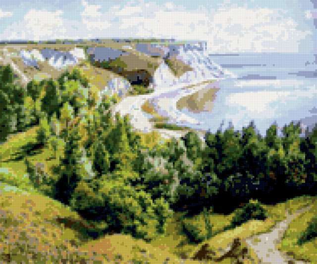Ориентировочно так, схема вышивки «Variant 2», созданная автором Lamisa, будет выглядеть при отшиве на канве. Размер данной вышивки равен 187x156 крестов, при этом используется 39 цветов. Ключевые слова, по которым можно найти эту схему: природа. Также, вы можете взглянуть на оригинальную картинку, соответствующую данной схеме вышивки.