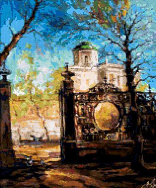 Ориентировочно так, схема вышивки «Variant 2», созданная автором Lamisa, будет выглядеть при отшиве на канве. Размер данной вышивки равен 158x190 крестов, при этом используется 62 цветов. Ключевые слова, по которым можно найти эту схему: город, вечер. Также, вы можете взглянуть на оригинальную картинку, соответствующую данной схеме вышивки.