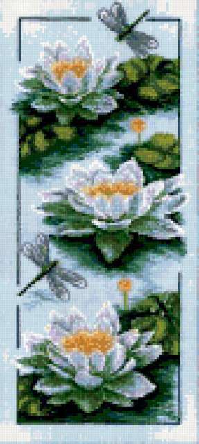 Ориентировочно так, схема вышивки «Variant 2», созданная автором Lamisa, будет выглядеть при отшиве на канве. Размер данной вышивки равен 85x189 крестов, при этом используется 52 цветов. Ключевые слова, по которым можно найти эту схему: цветы, лилии, насекомые, стрекозы. Также, вы можете взглянуть на оригинальную картинку, соответствующую данной схеме вышивки.