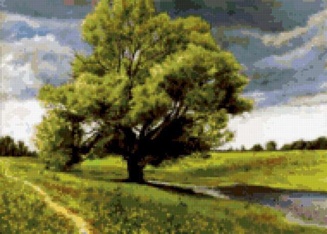 Ориентировочно так, схема вышивки «Variant 2», созданная автором Lamisa, будет выглядеть при отшиве на канве. Размер данной вышивки равен 190x136 крестов, при этом используется 72 цветов. Ключевые слова, по которым можно найти эту схему: природа, priroda, лето. Также, вы можете взглянуть на оригинальную картинку, соответствующую данной схеме вышивки.