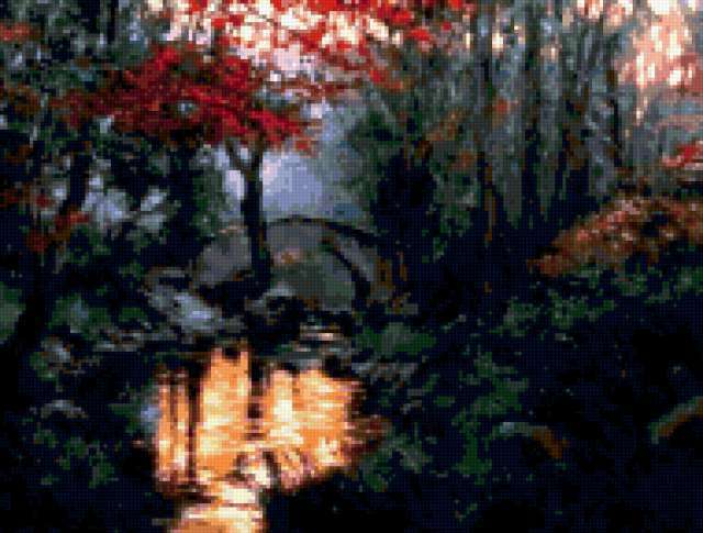 Ориентировочно так, схема вышивки «Variant 2», созданная автором Lamisa, будет выглядеть при отшиве на канве. Размер данной вышивки равен 190x144 крестов, при этом используется 64 цветов. Ключевые слова, по которым можно найти эту схему: природа, priroda, osenj. Также, вы можете взглянуть на оригинальную картинку, соответствующую данной схеме вышивки.