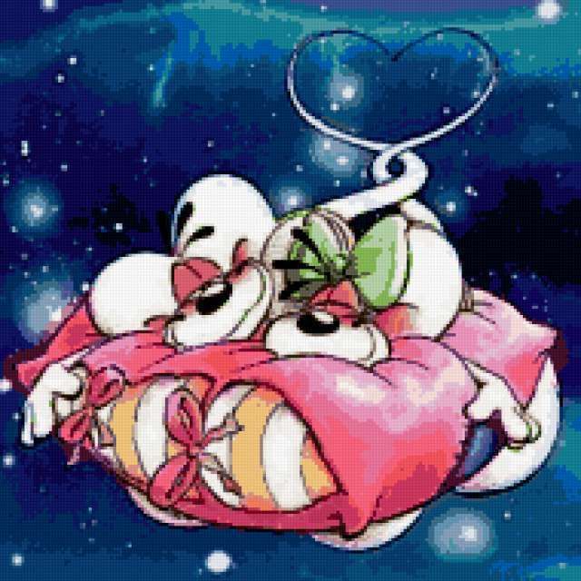 Ориентировочно так, схема вышивки «Variant 2», созданная автором Lamisa, будет выглядеть при отшиве на канве. Размер данной вышивки равен 190x190 крестов, при этом используется 57 цветов. Ключевые слова, по которым можно найти эту схему: детям, myshi, подушка. Также, вы можете взглянуть на оригинальную картинку, соответствующую данной схеме вышивки.
