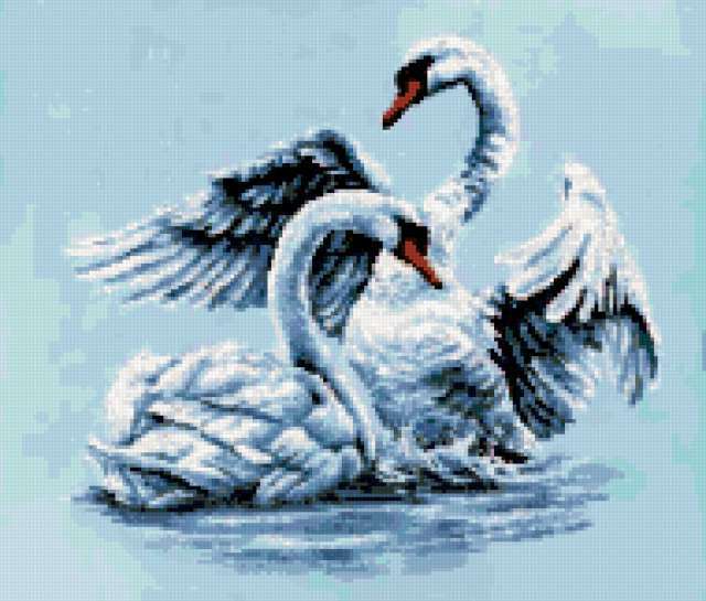 Ориентировочно так, схема вышивки «Variant 2», созданная автором Lamisa, будет выглядеть при отшиве на канве. Размер данной вышивки равен 190x162 крестов, при этом используется 43 цветов. Ключевые слова, по которым можно найти эту схему: птицы, pticy, лебеди, пара. Также, вы можете взглянуть на оригинальную картинку, соответствующую данной схеме вышивки.