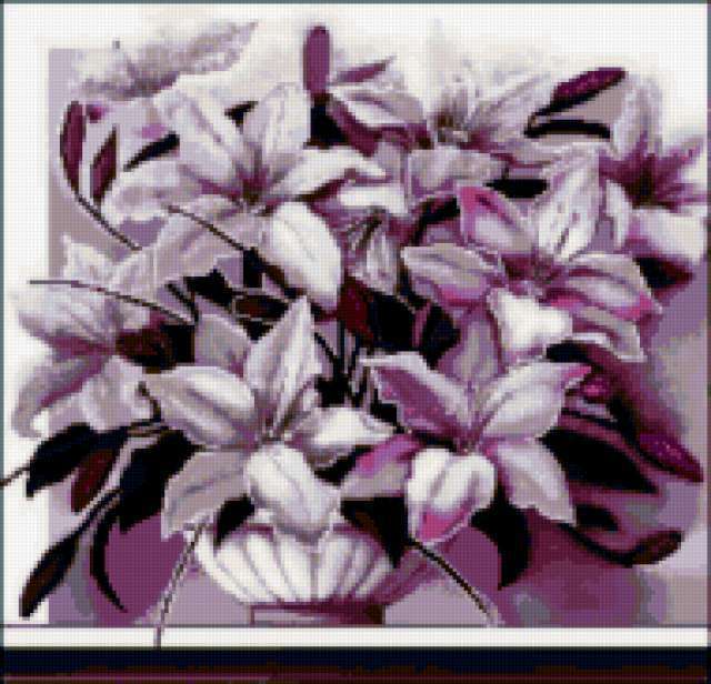 Ориентировочно так, схема вышивки «Variant 2», созданная автором Lamisa, будет выглядеть при отшиве на канве. Размер данной вышивки равен 190x183 крестов, при этом используется 47 цветов. Ключевые слова, по которым можно найти эту схему: цветы, cvety, букеты. Также, вы можете взглянуть на оригинальную картинку, соответствующую данной схеме вышивки.
