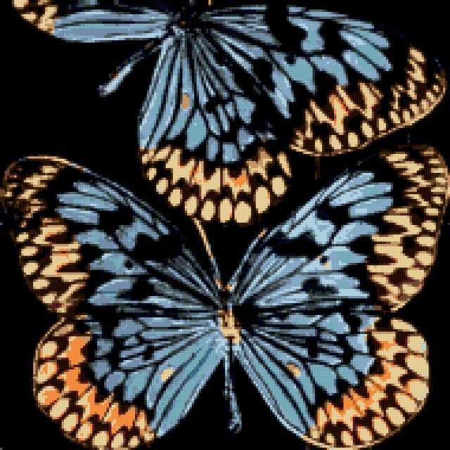 Ориентировочно так, схема вышивки «Variant 2», созданная автором Lamisa, будет выглядеть при отшиве на канве. Размер данной вышивки равен 190x190 крестов, при этом используется 21 цветов. Ключевые слова, по которым можно найти эту схему: бабочки, подушка. Также, вы можете взглянуть на оригинальную картинку, соответствующую данной схеме вышивки.