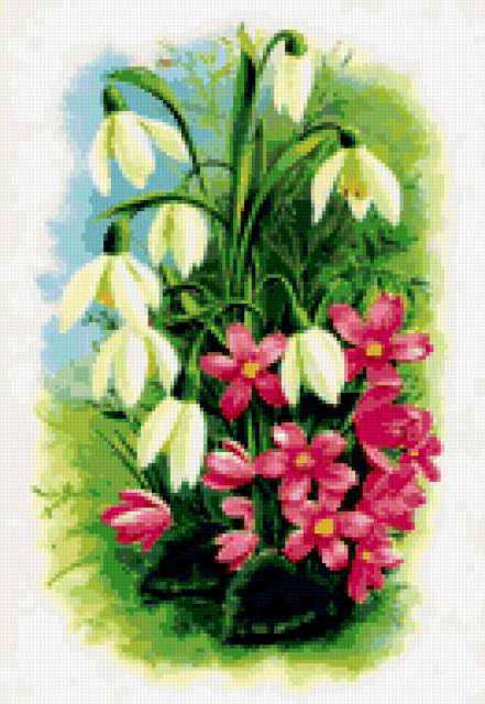 Ориентировочно так, схема вышивки «Variant 2», созданная автором Lamisa, будет выглядеть при отшиве на канве. Размер данной вышивки равен 131x190 крестов, при этом используется 54 цветов. Ключевые слова, по которым можно найти эту схему: цветы, cvety. Также, вы можете взглянуть на оригинальную картинку, соответствующую данной схеме вышивки.