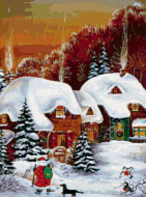 Ориентировочно так, схема вышивки «Variant 3», созданная автором Lamisa, будет выглядеть при отшиве на канве. Размер данной вышивки равен 141x190 крестов, при этом используется 61 цветов. Ключевые слова, по которым можно найти эту схему: зима, домик. Также, вы можете взглянуть на оригинальную картинку, соответствующую данной схеме вышивки.