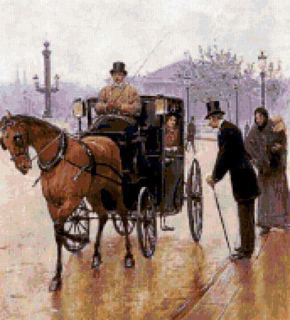 Ориентировочно так, схема вышивки «Variant 3», созданная автором Lamisa, будет выглядеть при отшиве на канве. Размер данной вышивки равен 172x190 крестов, при этом используется 60 цветов. Ключевые слова, по которым можно найти эту схему: люди, лошади, город. Также, вы можете взглянуть на оригинальную картинку, соответствующую данной схеме вышивки.