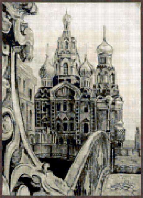 Ориентировочно так, схема вышивки «Variant 3», созданная автором Lamisa, будет выглядеть при отшиве на канве. Размер данной вышивки равен 130x180 крестов, при этом используется 42 цветов. Ключевые слова, по которым можно найти эту схему: город, храмы. Также, вы можете взглянуть на оригинальную картинку, соответствующую данной схеме вышивки.