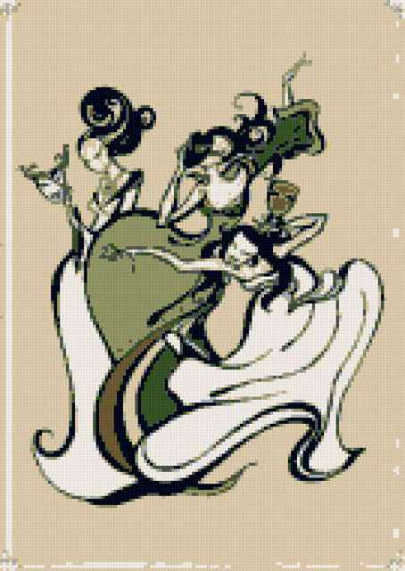 Ориентировочно так, схема вышивки «Variant 3», созданная автором Lamisa, будет выглядеть при отшиве на канве. Размер данной вышивки равен 135x190 крестов, при этом используется 10 цветов. Ключевые слова, по которым можно найти эту схему: девушки. Также, вы можете взглянуть на оригинальную картинку, соответствующую данной схеме вышивки.