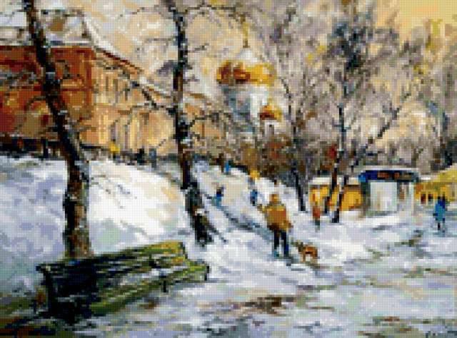 Ориентировочно так, схема вышивки «Variant 3», созданная автором Lamisa, будет выглядеть при отшиве на канве. Размер данной вышивки равен 190x141 крестов, при этом используется 82 цветов. Ключевые слова, по которым можно найти эту схему: город, храмы. Также, вы можете взглянуть на оригинальную картинку, соответствующую данной схеме вышивки.