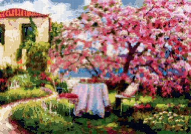 Ориентировочно так, схема вышивки «Variant 3», созданная автором Lamisa, будет выглядеть при отшиве на канве. Размер данной вышивки равен 190x133 крестов, при этом используется 49 цветов. Ключевые слова, по которым можно найти эту схему: природа, домик, цветы, лето. Также, вы можете взглянуть на оригинальную картинку, соответствующую данной схеме вышивки.