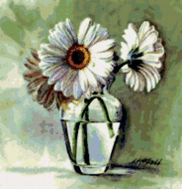 Ориентировочно так, схема вышивки «Variant 3», созданная автором Lamisa, будет выглядеть при отшиве на канве. Размер данной вышивки равен 184x190 крестов, при этом используется 50 цветов. Ключевые слова, по которым можно найти эту схему: цветы, букеты, cvety. Также, вы можете взглянуть на оригинальную картинку, соответствующую данной схеме вышивки.