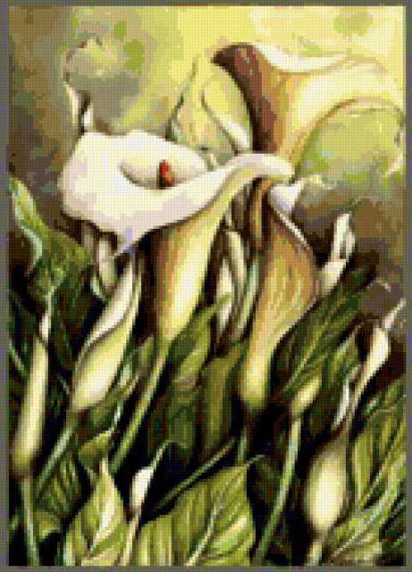 Ориентировочно так, схема вышивки «Variant 3», созданная автором Lamisa, будет выглядеть при отшиве на канве. Размер данной вышивки равен 137x190 крестов, при этом используется 57 цветов. Ключевые слова, по которым можно найти эту схему: цветы, cvety. Также, вы можете взглянуть на оригинальную картинку, соответствующую данной схеме вышивки.