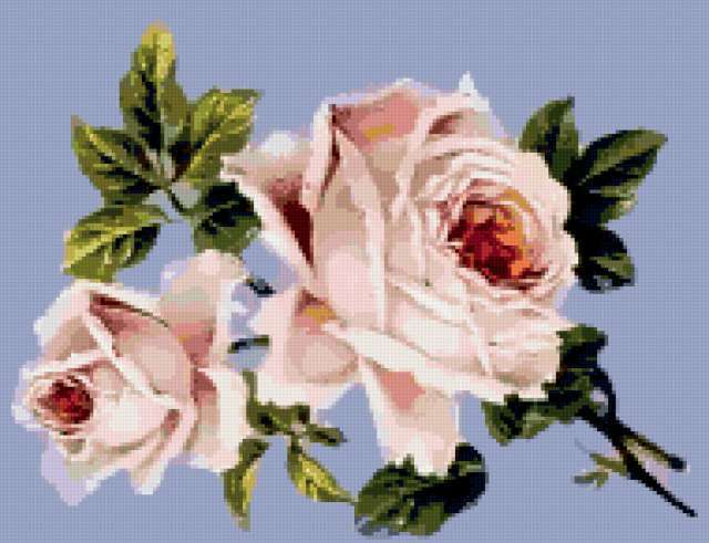 Ориентировочно так, схема вышивки «Variant 3», созданная автором Lamisa, будет выглядеть при отшиве на канве. Размер данной вышивки равен 190x146 крестов, при этом используется 51 цветов. Ключевые слова, по которым можно найти эту схему: цветы, cvety, розы. Также, вы можете взглянуть на оригинальную картинку, соответствующую данной схеме вышивки.