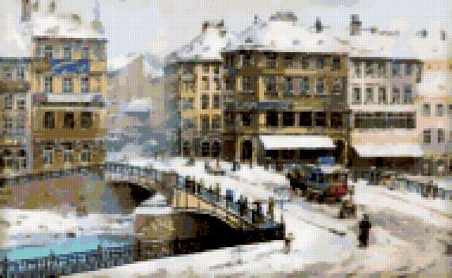 Ориентировочно так, схема вышивки «Variant 3», созданная автором Lamisa, будет выглядеть при отшиве на канве. Размер данной вышивки равен 190x117 крестов, при этом используется 74 цветов. Ключевые слова, по которым можно найти эту схему: город, gorod, зима. Также, вы можете взглянуть на оригинальную картинку, соответствующую данной схеме вышивки.