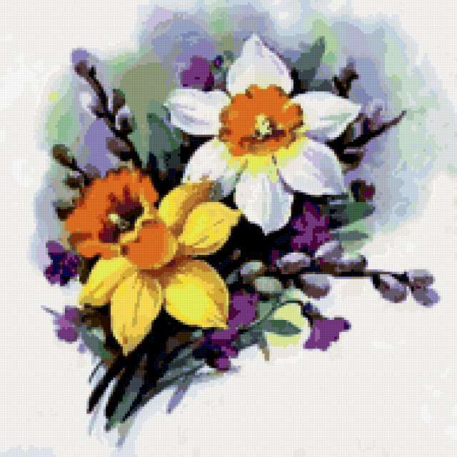 Ориентировочно так, схема вышивки «Variant 3», созданная автором Lamisa, будет выглядеть при отшиве на канве. Размер данной вышивки равен 190x190 крестов, при этом используется 69 цветов. Ключевые слова, по которым можно найти эту схему: цветы, cvety, подушка. Также, вы можете взглянуть на оригинальную картинку, соответствующую данной схеме вышивки.