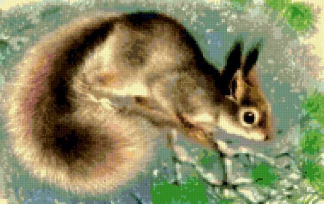 Ориентировочно так, схема вышивки «Variant 3», созданная автором Lamisa, будет выглядеть при отшиве на канве. Размер данной вышивки равен 190x120 крестов, при этом используется 59 цветов. Ключевые слова, по которым можно найти эту схему: животные, zhivotnye, белки. Также, вы можете взглянуть на оригинальную картинку, соответствующую данной схеме вышивки.