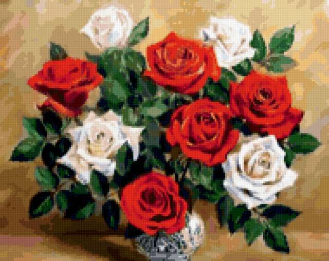 Ориентировочно так, схема вышивки «Variant 3», созданная автором Lamisa, будет выглядеть при отшиве на канве. Размер данной вышивки равен 190x151 крестов, при этом используется 78 цветов. Ключевые слова, по которым можно найти эту схему: цветы, cvety, розы, букеты. Также, вы можете взглянуть на оригинальную картинку, соответствующую данной схеме вышивки.