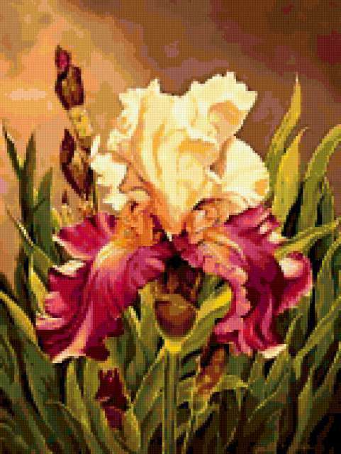 Ориентировочно так, схема вышивки «Variant 3b», созданная автором Lamisa, будет выглядеть при отшиве на канве. Размер данной вышивки равен 143x190 крестов, при этом используется 78 цветов. Ключевые слова, по которым можно найти эту схему: цветы, cvety. Также, вы можете взглянуть на оригинальную картинку, соответствующую данной схеме вышивки.
