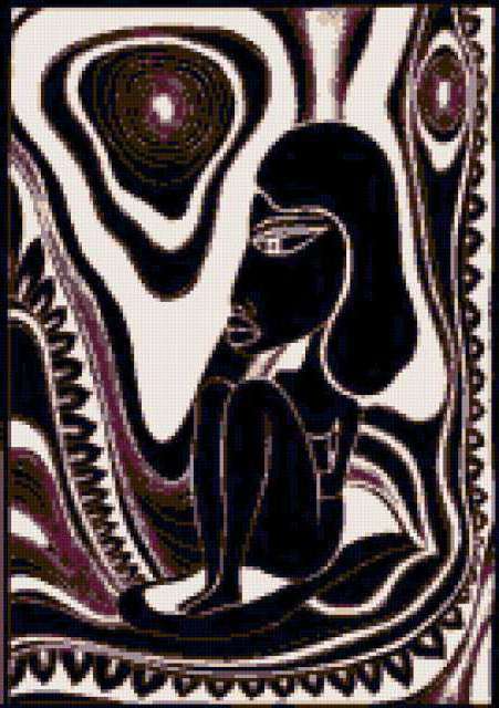 Ориентировочно так, схема вышивки «Variant 4», созданная автором Lamisa, будет выглядеть при отшиве на канве. Размер данной вышивки равен 134x190 крестов, при этом используется 12 цветов. Ключевые слова, по которым можно найти эту схему: девушка, Aфрика. Также, вы можете взглянуть на оригинальную картинку, соответствующую данной схеме вышивки.