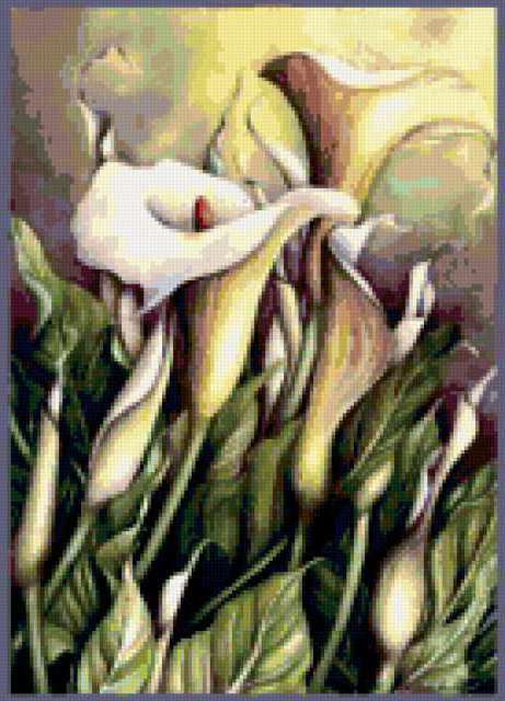 Ориентировочно так, схема вышивки «Variant 4», созданная автором Lamisa, будет выглядеть при отшиве на канве. Размер данной вышивки равен 137x190 крестов, при этом используется 81 цветов. Ключевые слова, по которым можно найти эту схему: цветы, cvety. Также, вы можете взглянуть на оригинальную картинку, соответствующую данной схеме вышивки.