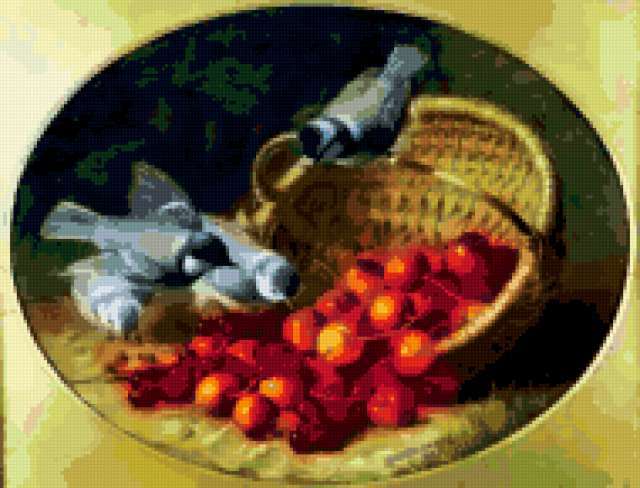 Ориентировочно так, схема вышивки «Variant 4», созданная автором Lamisa, будет выглядеть при отшиве на канве. Размер данной вышивки равен 190x145 крестов, при этом используется 76 цветов. Ключевые слова, по которым можно найти эту схему: птицы, pticy, ягоды, живопись. Также, вы можете взглянуть на оригинальную картинку, соответствующую данной схеме вышивки.