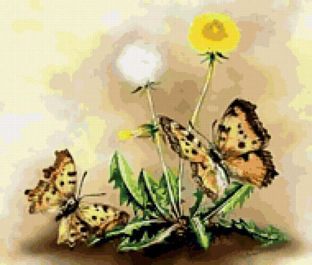Ориентировочно так, схема вышивки «Variant 4», созданная автором Lamisa, будет выглядеть при отшиве на канве. Размер данной вышивки равен 190x162 крестов, при этом используется 66 цветов. Ключевые слова, по которым можно найти эту схему: цветы, насекомые, nasekomye, бабочки. Также, вы можете взглянуть на оригинальную картинку, соответствующую данной схеме вышивки.