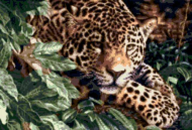 Ориентировочно так, схема вышивки «Variant 4», созданная автором Lamisa, будет выглядеть при отшиве на канве. Размер данной вышивки равен 190x129 крестов, при этом используется 35 цветов. Ключевые слова, по которым можно найти эту схему: животные, леопард. Также, вы можете взглянуть на оригинальную картинку, соответствующую данной схеме вышивки.