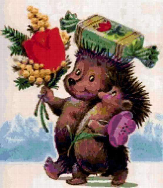 Ориентировочно так, схема вышивки «Variant 4», созданная автором Lamisa, будет выглядеть при отшиве на канве. Размер данной вышивки равен 165x190 крестов, при этом используется 59 цветов. Ключевые слова, по которым можно найти эту схему: детям. Также, вы можете взглянуть на оригинальную картинку, соответствующую данной схеме вышивки.