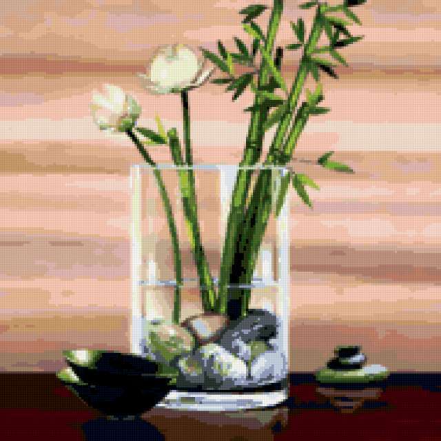 Ориентировочно так, схема вышивки «Variant 4a», созданная автором Lamisa, будет выглядеть при отшиве на канве. Размер данной вышивки равен 190x190 крестов, при этом используется 47 цветов. Ключевые слова, по которым можно найти эту схему: цветы, cvety, букеты, натюрморт. Также, вы можете взглянуть на оригинальную картинку, соответствующую данной схеме вышивки.