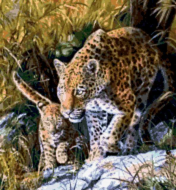 Ориентировочно так, схема вышивки «Variant 5», созданная автором Lamisa, будет выглядеть при отшиве на канве. Размер данной вышивки равен 176x190 крестов, при этом используется 58 цветов. Ключевые слова, по которым можно найти эту схему: животные, zhivotnye, леопард. Также, вы можете взглянуть на оригинальную картинку, соответствующую данной схеме вышивки.