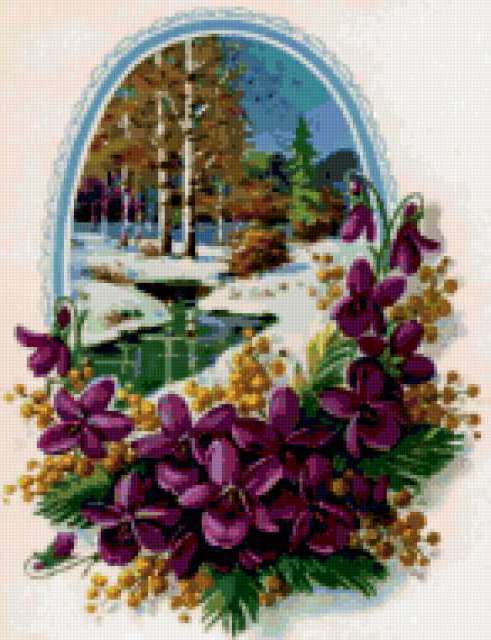 Ориентировочно так, схема вышивки «Variant 5», созданная автором Lamisa, будет выглядеть при отшиве на канве. Размер данной вышивки равен 146x190 крестов, при этом используется 79 цветов. Ключевые слова, по которым можно найти эту схему: природа, цветы. Также, вы можете взглянуть на оригинальную картинку, соответствующую данной схеме вышивки.