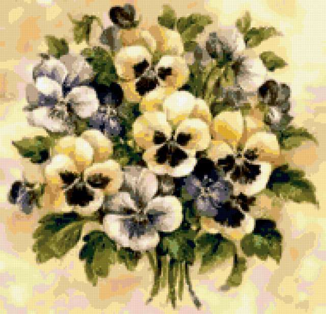 Ориентировочно так, схема вышивки «Variant 5», созданная автором Lamisa, будет выглядеть при отшиве на канве. Размер данной вышивки равен 190x183 крестов, при этом используется 49 цветов. Ключевые слова, по которым можно найти эту схему: цветы, cvety, подушка. Также, вы можете взглянуть на оригинальную картинку, соответствующую данной схеме вышивки.