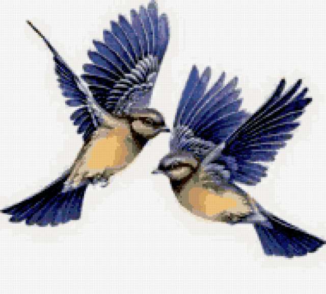 Ориентировочно так, схема вышивки «Variant 5», созданная автором Lamisa, будет выглядеть при отшиве на канве. Размер данной вышивки равен 190x171 крестов, при этом используется 45 цветов. Ключевые слова, по которым можно найти эту схему: птицы, pticy, пара. Также, вы можете взглянуть на оригинальную картинку, соответствующую данной схеме вышивки.