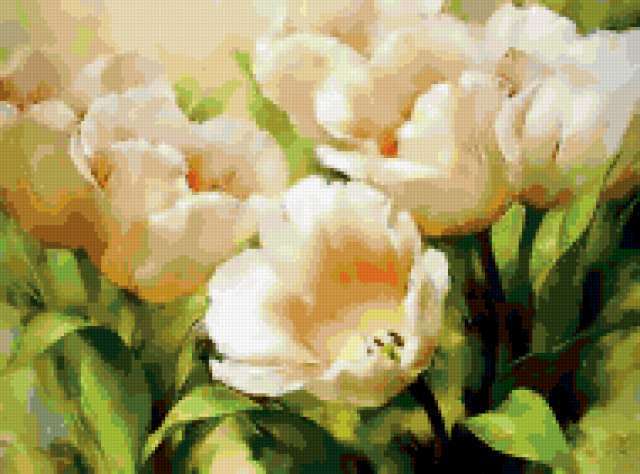 Ориентировочно так, схема вышивки «Variant 5», созданная автором Lamisa, будет выглядеть при отшиве на канве. Размер данной вышивки равен 190x141 крестов, при этом используется 68 цветов. Ключевые слова, по которым можно найти эту схему: цветы, cvety. Также, вы можете взглянуть на оригинальную картинку, соответствующую данной схеме вышивки.