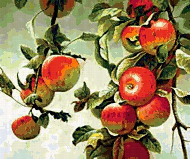 Ориентировочно так, схема вышивки «Variant 5a», созданная автором Lamisa, будет выглядеть при отшиве на канве. Размер данной вышивки равен 190x159 крестов, при этом используется 66 цветов. Ключевые слова, по которым можно найти эту схему: фрукты, frukty. Также, вы можете взглянуть на оригинальную картинку, соответствующую данной схеме вышивки.
