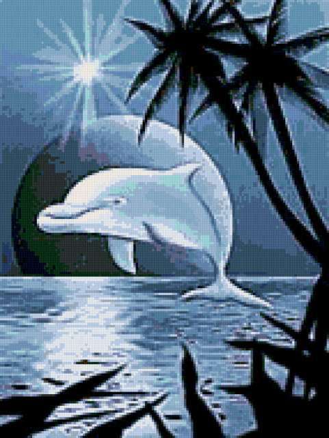Ориентировочно так, схема вышивки «Variant 6», созданная автором Lamisa, будет выглядеть при отшиве на канве. Размер данной вышивки равен 143x190 крестов, при этом используется 28 цветов. Ключевые слова, по которым можно найти эту схему: животные, дельфины. Также, вы можете взглянуть на оригинальную картинку, соответствующую данной схеме вышивки.